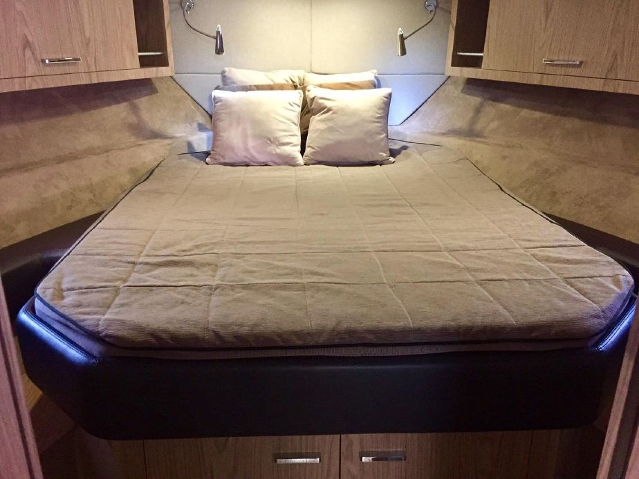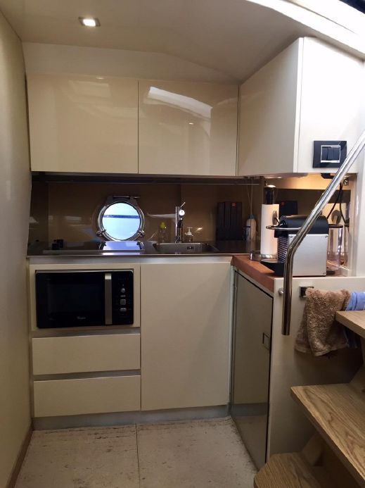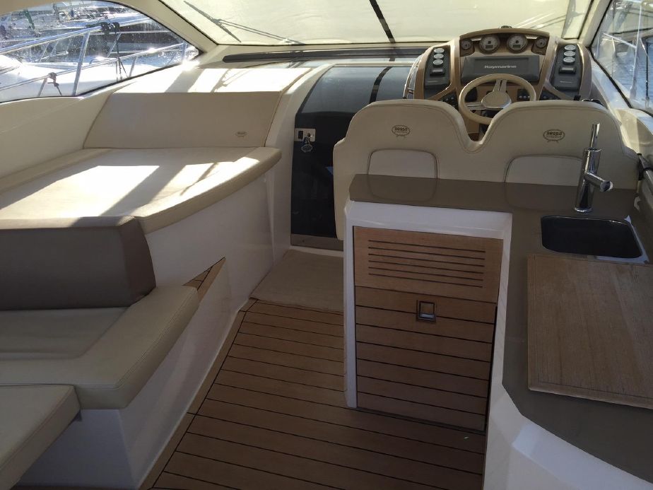 The unmistakable sleek profile and sportsboat-like performance of the Sessa C38 Cruising line are exiting. With her elegant style and innovative design, it’s a pleasure to be onboard. The open cockpit gives you the feeling of becoming one with the sea. Below deck the optimization of space makes it good livable. There are two cabins for 4 guests. The alfresco character you find back in the spacious open cockpit with lounge area and the nearby located outdoor galley.