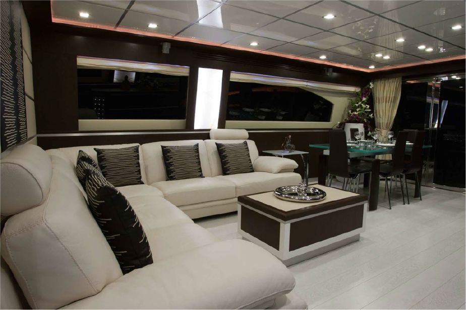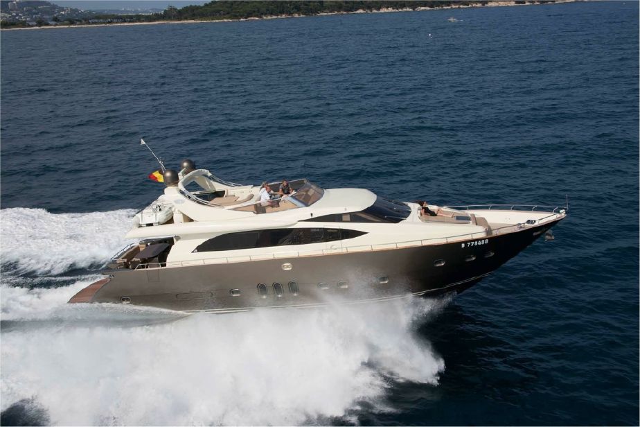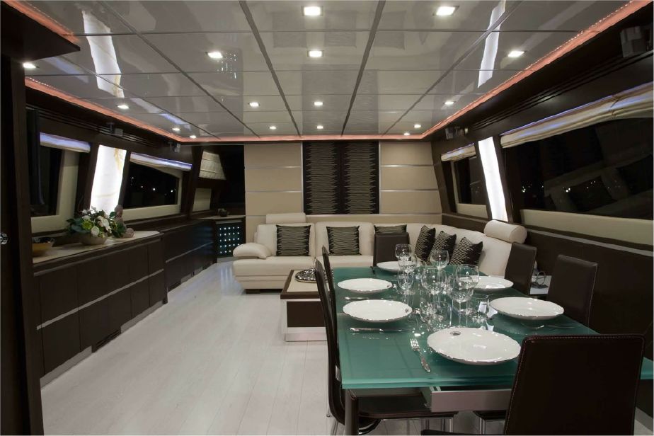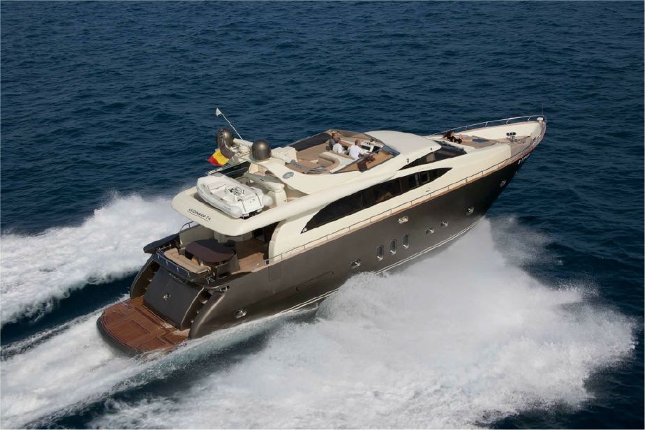 The Leonard 74 amazes with her technical performance and appearance. The sleek, aerodynamic hull, due to which the yacht is flying over the water, powerful engines and futuristic design of the superstructure makes this yacht one of a kind. The large tinted windows create a private atmosphere onboard, though allows plenty of natural light and idyllic views. At the bow of the yacht there’s a spacious sunbathing area, ideal to enjoy the sun and the sea.