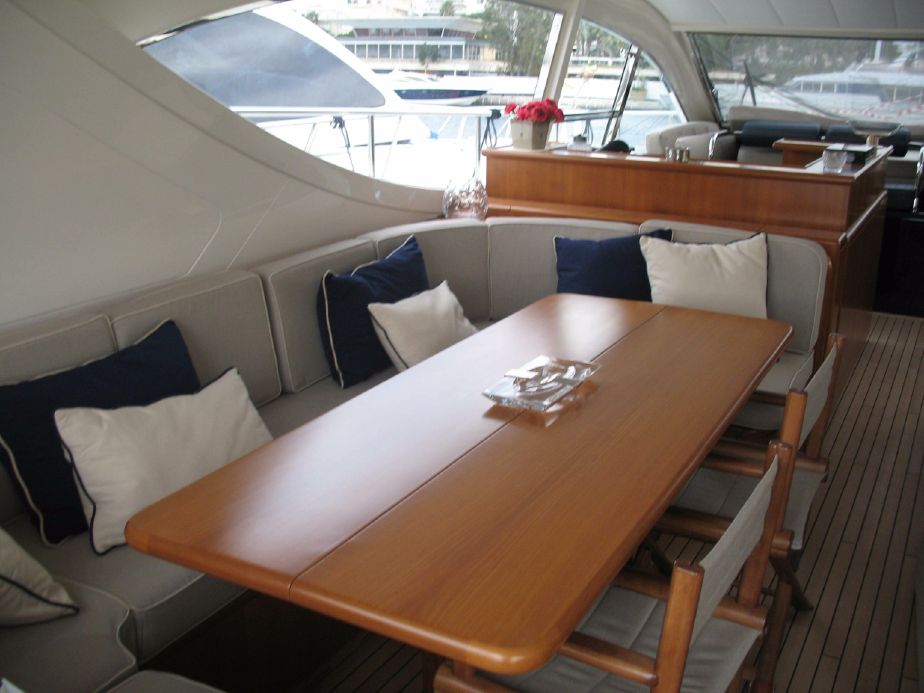 Powered by two MTU engines of a total of 3000 HP she finds her way in the water easily. Fully equipped with navigation, entertainment, kitchen supplies and a possibility to store the tender in the opening transom/ garage, she’s awaiting your arrival on board.