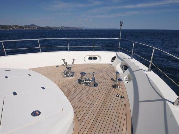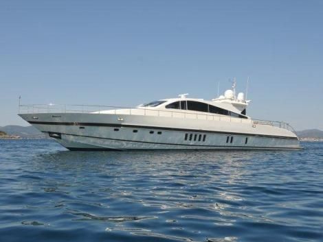 Fast and comfortable, the Leopard 27 is a sleek and refined yacht ideal for cruising around the Mediterranean with top speeds in excess of 36 knots. The Leopard 27 posseses the perfect combination of an open motor yacht with smooth performance as well as being the perfect yacht for a relaxed family holiday. She offers accommodation for up to 6 guests in 3 cabins. Powered by two MTU engines of a total of 4360 HP she finds her way in the water easily.