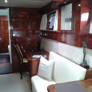 Below deck she can accommodate up to 6 guests in 3 guest rooms. Each of them equipped with their own bathroom.